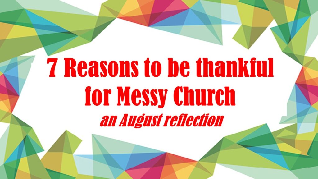 6. Thank you, Messy Church, that you offer us a church with a real life discipleship programme that doesn’t depend on a series of courses or study groups, nor seminars, nor sermons, but living relationships that give us the opportunity to watch and learn from each other and meet Jesus in each other as we create, chat, learn and eat together. A discipleship that holds us accountable to each other as we learn from our neighbour whatever stage on the journey they are and they from us wherever we have reached. For this, I say thank you for Messy Church.