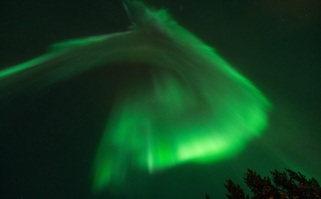 We were told to keep our eyes peeled as we drove, but at 11.30pm, we were effectively heading back to base camp. That’s when I spotted white shadows starting to dance across the sky again.