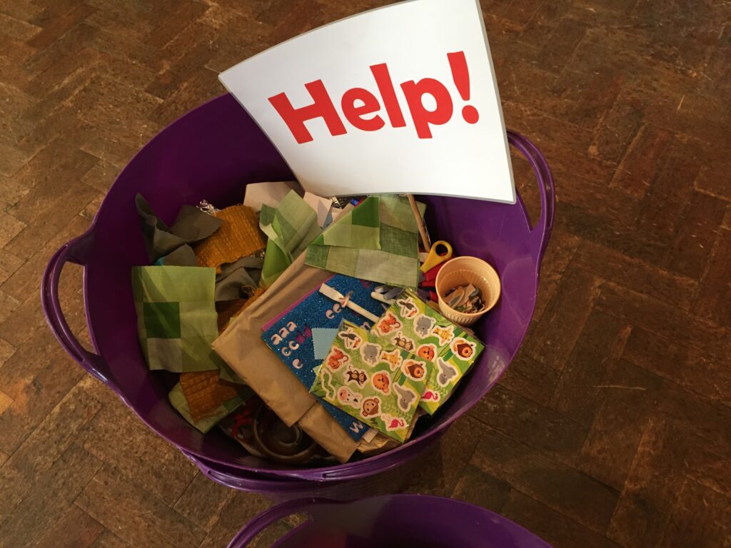 We set up on Thursday night for the Messy Church session on the Sunday afternoon, so that the equipment could all sit for 72 hours. The whole process was rather like cooking a stirfry: all the hard work was in the preparation (advertising to the families locally, a robust booking system, selecting suitable activities, creating the instructions sheets, packing a trug for each table with every possible item they might require, making sure each member of the team is confident what their role is and how they need to stay safe and keep others safe…) and the actual delivery was super-easy. Especially compared with a normal Messy Church! Reflection #2: The structure provided for Covid times could be useful in more normal times for a church who genuinely have a very small team but who want to do something for families. It’s not Messy Church but it works, for a given value of ‘works’.