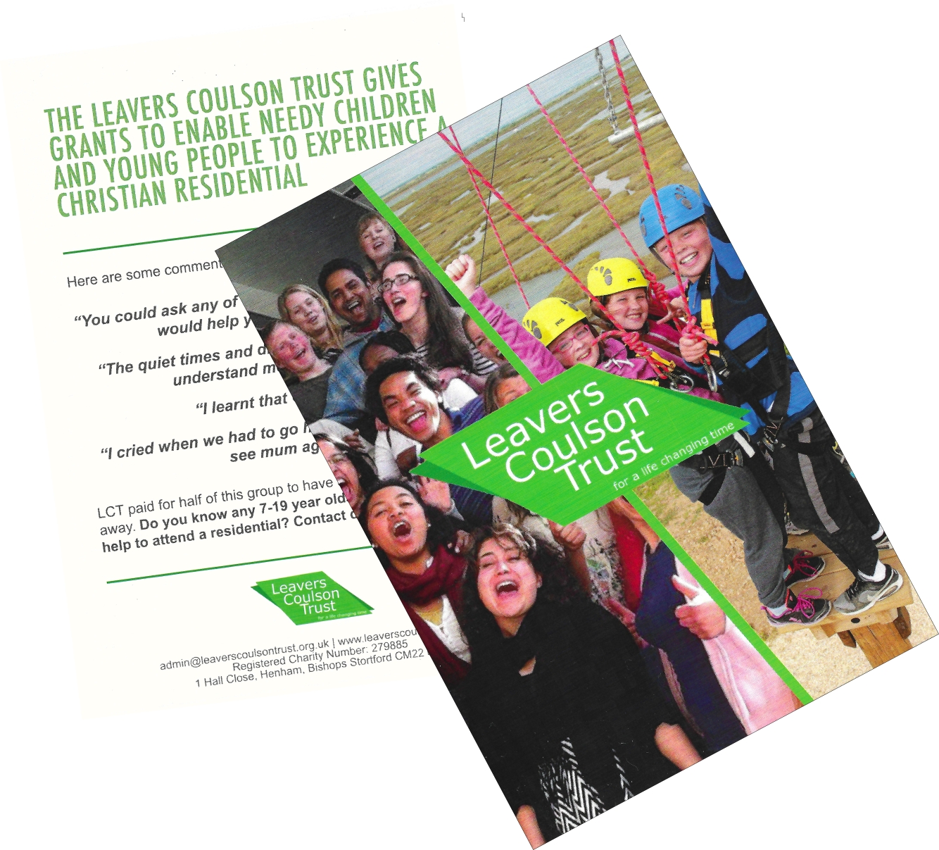 The Leavers Coulson Trust (LCT) has been helping young people from disadvantaged backgrounds to have a life-changing experience for over 40 years. It is a small charity founded in memory of Graham Leavers, a youth worker with Frontier Youth Trust, and Philip Coulson, who lived with his family at a Christian residential activity centre but died suddenly aged seven. LCT trustees are keen to receive applications from group leaders for specific individuals to enable children and young people aged 7-19 to attend Christian residentials as part of a group. All that’s needed is a clear indication of financial need and social deprivation (e.g. recognised metrics such as free school meals and/or receipt of benefits, plus a description of the family’s circumstances, etc.), together with membership of a supportive Christian youth group, and of course, a Christian-based residential to attend.