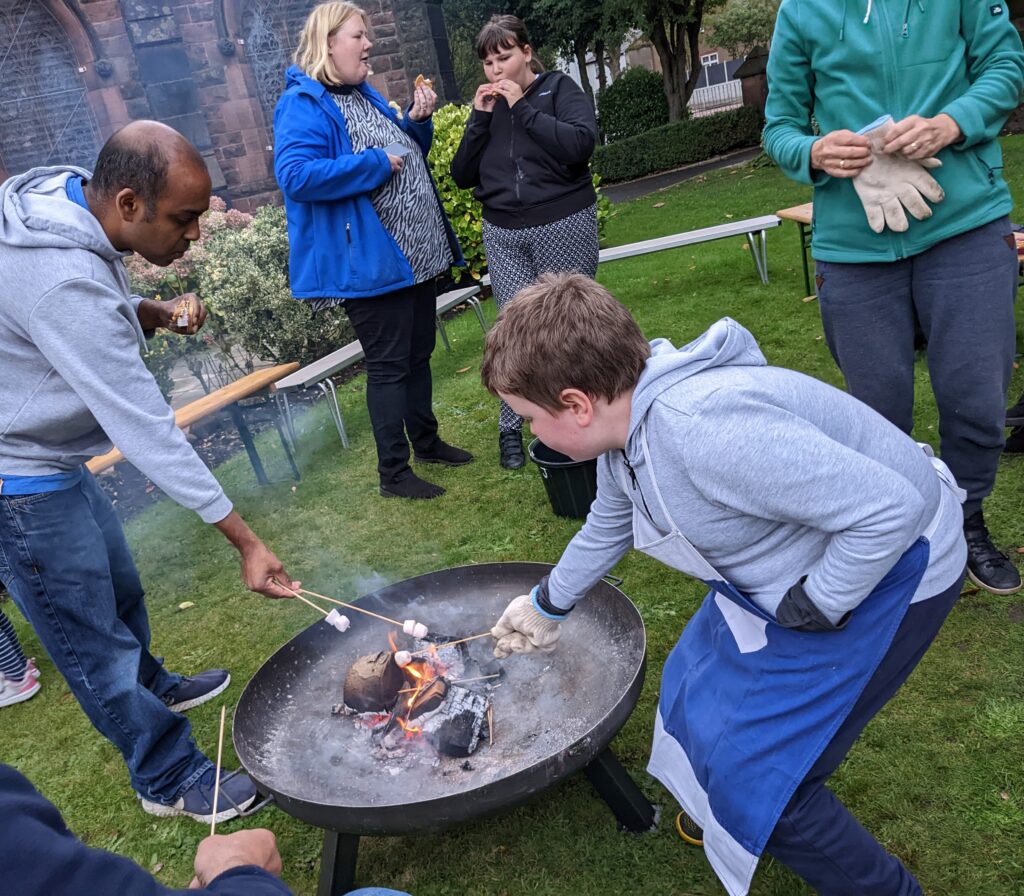 ‘Messy Church is not just making them feel part of a community and part of the church,’ she says, ‘it’s teaching them lots of things about giving back and not just taking, and about contributing to your community, and the fact that your community is made up of all sorts of different people from all sorts of different backgrounds. It’s open to everyone whether or not they are a Christian or whether or not they come from this area: so we have a family of Ukrainian refugees who always help manage the fire because they told us in their village, every week, they would all come together in the village around a communal fire and have a communal meal and that Messy Church was like that for them here.
