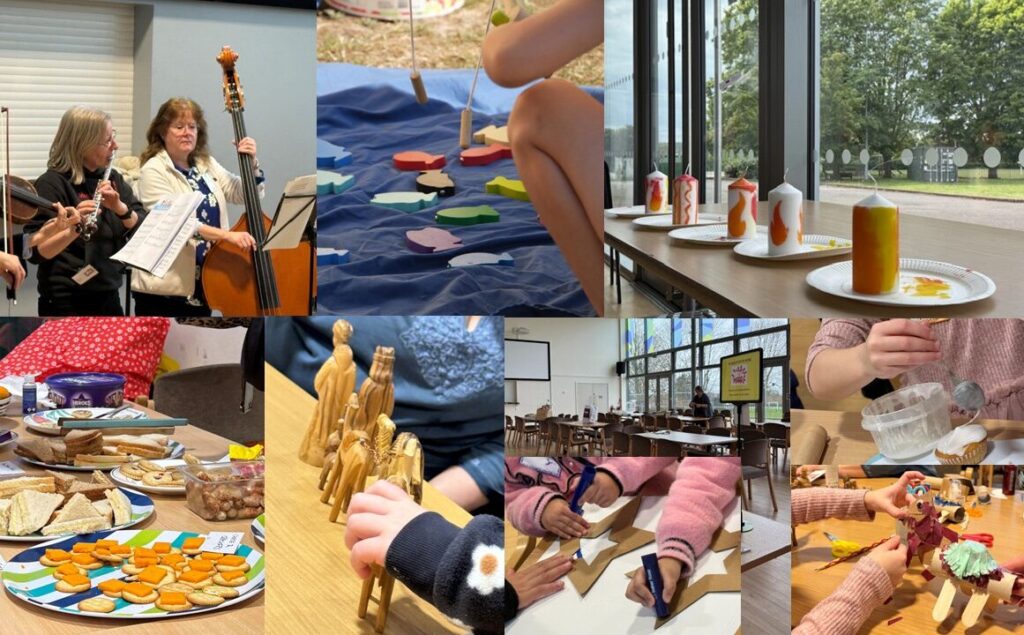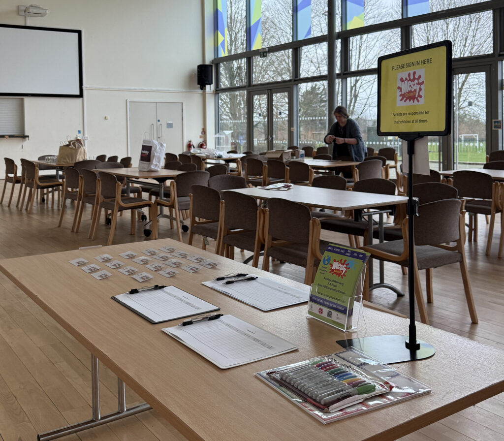 We began Messy Church in January 2025 as a collaboration between St Mary’s Church of England Church and Rose Hill Methodist Church. Neither of us have very many children coming to our Sunday services, and we had found it hard to reach out to the many families who live on the Rose Hill estate. We considered alternating between our churches, but it made more sense to meet where most families live, and to use the modern community centre which is at the heart of the estate. We were concerned the large ballroom might be a bit big if not many families came, but from the beginning we didn’t need to worry. We received some start-up funding from the Diocese and Methodist Circuit which helped us build up some resources and get some decent publicity printed, all of which helped as we began.